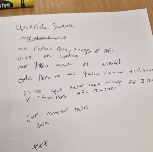 The project kicked off on Saturday with Lucas and Rosa leading the charge, creating touching letters for Juana, who lives in Albacete and is 86 years old. She will receive the card from Lucas and Rosa and I am sure she will be thrilled. The message from both Rosa and Lucas truly captured the Christmas spirit. ¡Muy bien chicos! We’ll continue to upload these letters and showcase our students’ creativity and compassion.